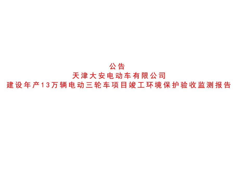 公司動態 天津大安電動車有限公司建設年產13萬輛電動三輪車項目竣工環境保護驗收監測報告
